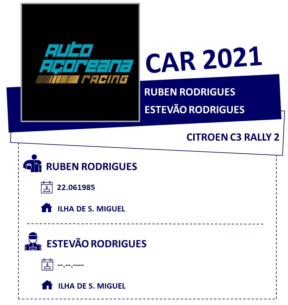 | 2 | Ruben Rodrigues | Estevão Rodrigues | CITROEN C3 R5 | Auto Açoreana Racing |