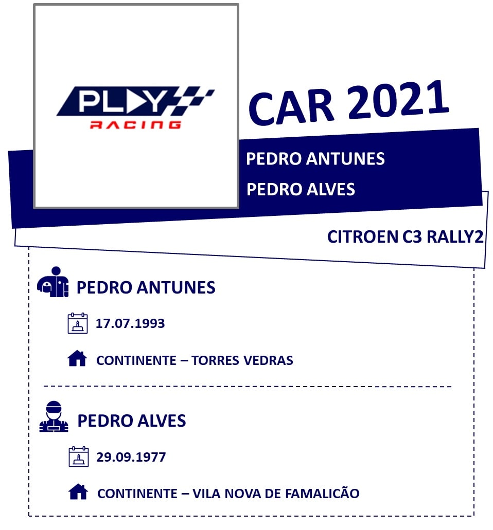 | 11 | Pedro Antunes | Pedro Alves | CITROEN C3 R5 | Play Racing |