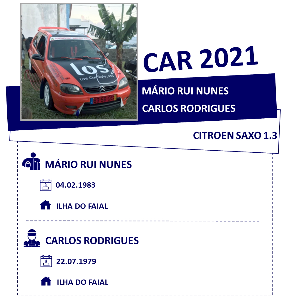 | 2 | Ruben Rodrigues | Estevão Rodrigues | CITROEN C3 R5 | Auto Açoreana Racing |